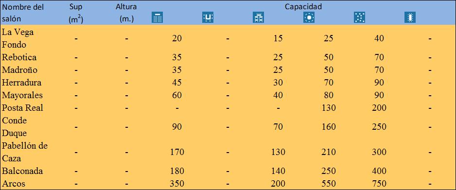 CAPACIDAD DE LOS SALONES DE LA POSTA REAL